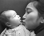 Sachiko gives Kinu a kiss.