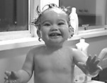 Kinu frolicking in the kitchen sink.