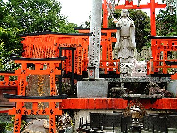 This was a fake (low maintenance) cat at the Toji flea market. It was convincingly realistic until you got up very close. These branding irons were on display at the sake museum in Kobe. I’m not sure how they were used since I couldn’t read the labels or signs. I would guess they were used for marking wooden barrels — I hope not for branding the famous Kobe beef cattle. More of the spectacular 10,000 torii gates at Fushimi Inari. Torii at Fushimi Inari. |